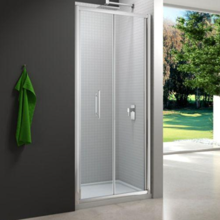 Pocket doors save on the door swing, making them ideal for tight areas. A glass shower door can make the room feel larger by ensuring an open visual line.