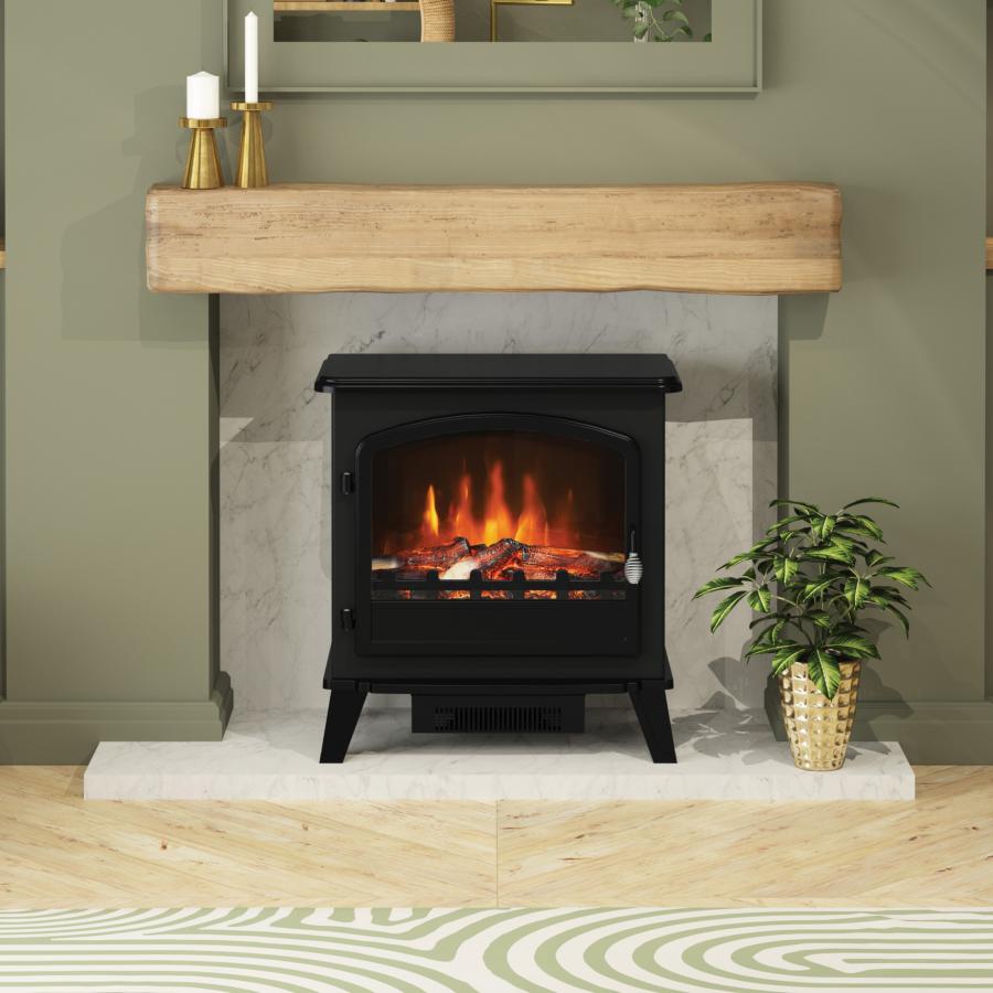 Introducing the Trowpoint Grande Electric Stove: a stylish and versatile heating solution in a sophisticated Matt Black finish.