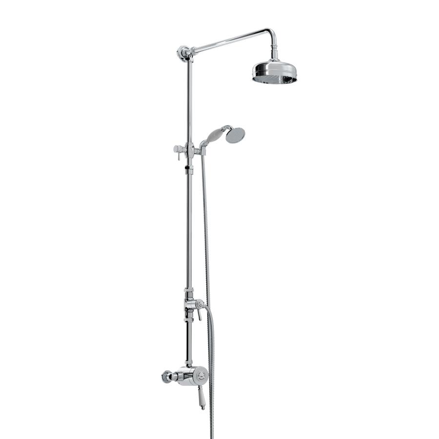 With Edwardian-inspired styling, this fixture adds a timeless quality to your décor that will never go out of style. Featuring 15mm inlet connections, it is easily replaceable with adjustable inlets, allowing compatibility with existing pipework centers between 136mm and 158mm. The thermostatic cartridge includes a preset temperature stop at 42°C for safety. Supplied with 2 x 8L/min flow regulators, it also comes with an external diverter, shower rose, rigid riser, and a rub-clean anti-limescale handset for a luxurious experience. Matching taps are available to complete the set.