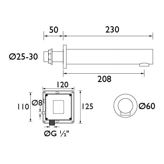 1. Description of Bristan Infrared Automatic Basin Wall Spout IRWS1-CP:
