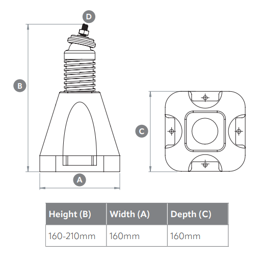 • Adjustable height between 160-210mm