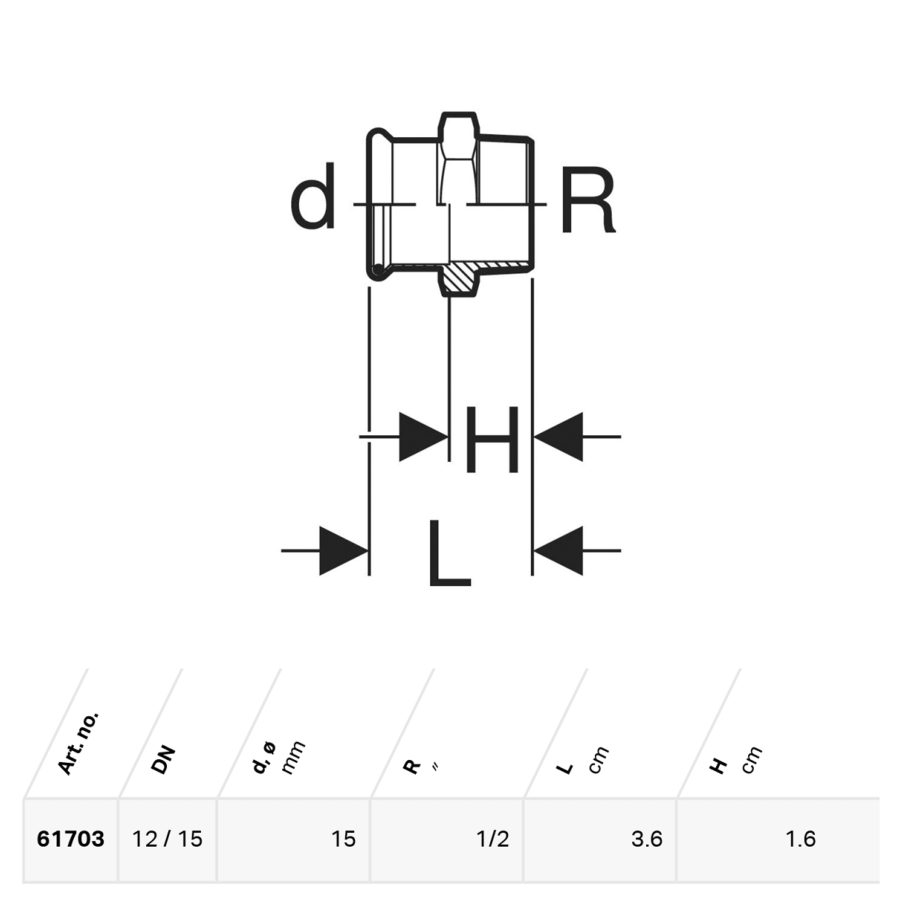 1. Description of Geberit Mapress Copper Adaptor with Male Thread: CC499K, d=15mm, R=1/2" - 61703: