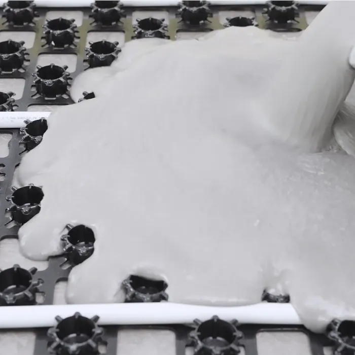 Installation of the panels is fast and simple as it features an overlapping alignment system for simple hassle-free panel laying, as well as a super strong adhesive backing. This allows for the panel to be installed directly onto the existing sub floor structure. The open grid design ensures the screed layer poured on top flows smoothly and evenly over the panel.