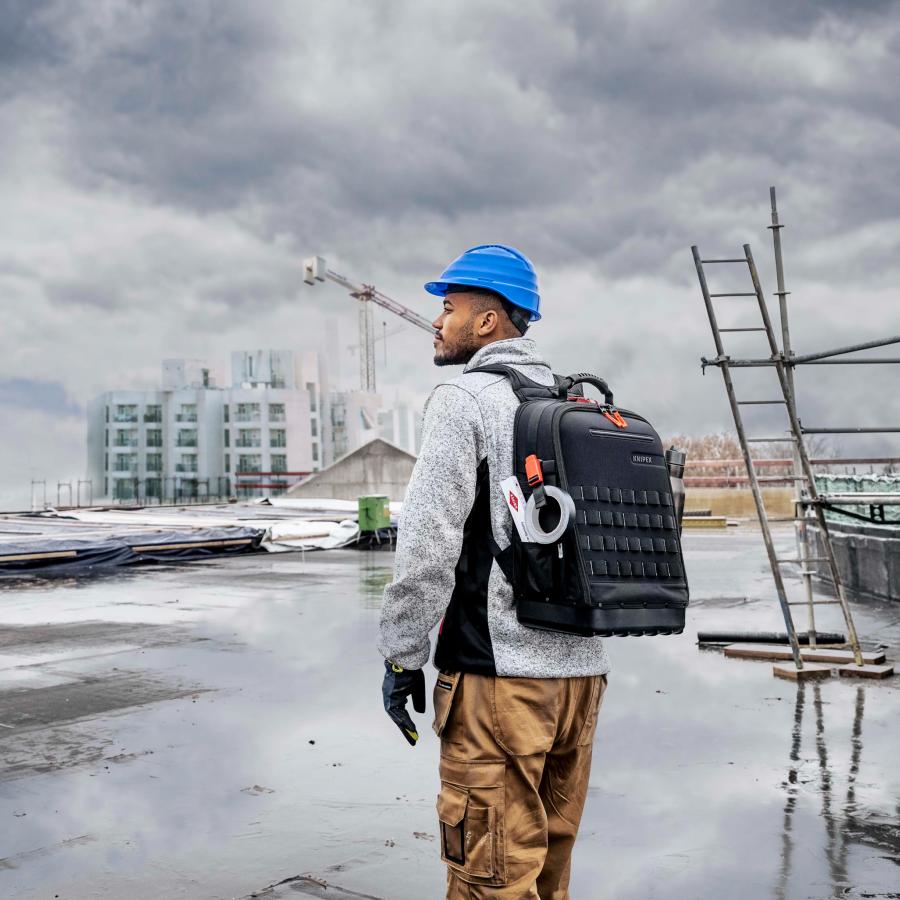 00 21 50 LE KNIPEX Modular X18 Fits you and your tools: practical and comfortable due to fully hinged front and back, removable tool board and padding for your back.