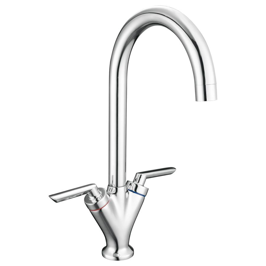 The Reginox PIQUA Two-Levered Kitchen Mixer Tap is the perfect complement to your sink. Finely tuned water temperature can be adjusted with ease, and the practical U-spout makes it easy to get just the right angle on your pots and pans. The tap also features a water saving aerator, making it economical as well as stylish. Finished in polished chrome, this tap will make a great addition to any kitchen.